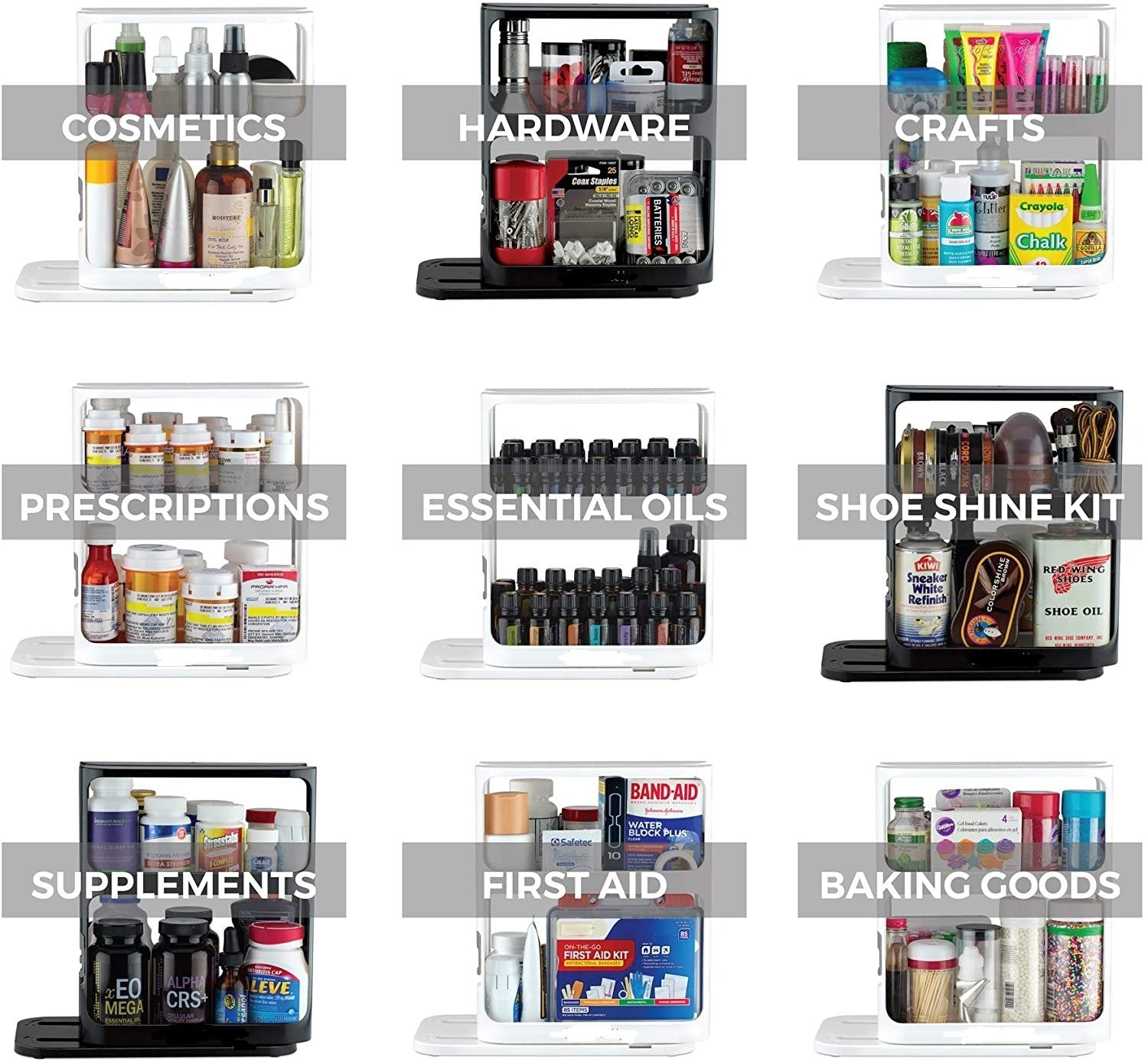 Compared to most storage shelves, our wider, rotating shelves can hold larger bottles, including standard vitamin bottles.